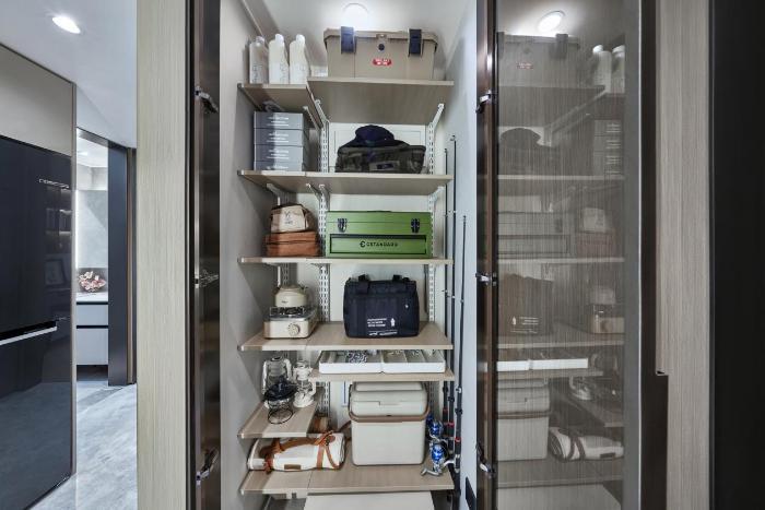 京华国贤府深入考量收纳需求,通过一系列精巧设计,展现收纳空间的独特魅力。如针对“小家电”收纳困难,专门做了一个“智能便捷的电器塔”,通过垂直墙面空间,让小家电不再占用台面;卫浴间使用了镜柜收纳设计,用空间不同高度分区,实现约三平米立体空间扩围。配合“超级收纳系统”,像走廊收纳库、飘窗收纳组合等,创造出更多收纳空间,让家庭成员都可以拥有互不打扰的私人储物体验。