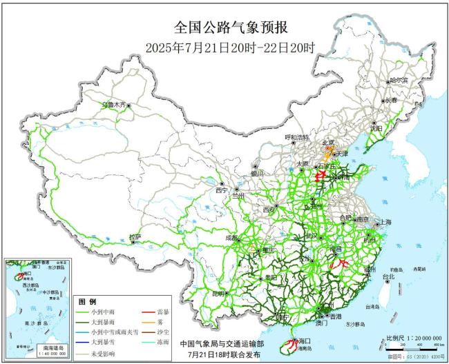 全国这些路段受大雨雷暴影响 多地交通受阻