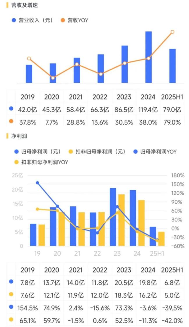 从业绩层面看,自2024年以来石头科技呈现出“增收不增利”的特征,并在2025年进一步延续。上半年,公司实现营业收入79.03亿,同比增幅高达79.0%;实现归母净利润6.78亿,同比却下滑了39.5%。