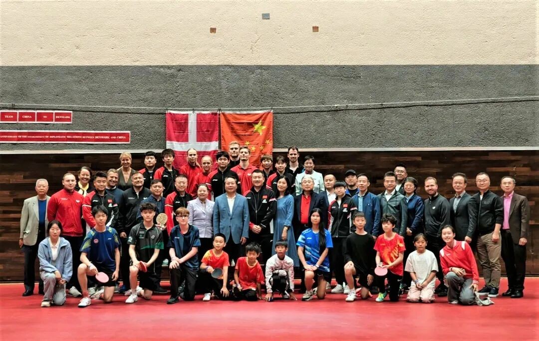 中国驻丹麦大使王雪峰出席庆祝中丹建交75周年乒乓球友谊赛