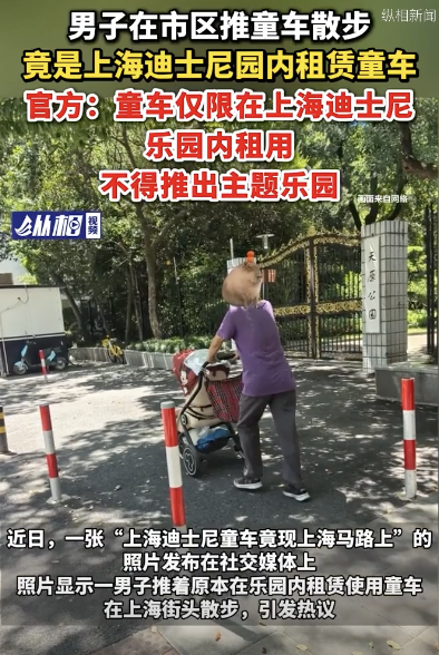 上海迪士尼回应童车被推到市区马路:童车仅限在上海迪士尼乐园内租用