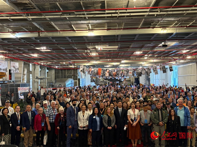人民网阿拉米达8月31日电 (记者邓圩)当地时间8月30日,美国加州阿拉米达市大黄蜂号航空母舰博物馆内气氛庄重,由大黄蜂号航空母舰博物馆、卡特中心、抗日战争纪念馆等机构联合主办的中国人民抗日战争暨世界反法西斯战争胜利80周年纪念活动隆重举行。中国驻美大使谢锋视频致辞,中国驻旧金山总领事张建敏应邀出席并讲话。