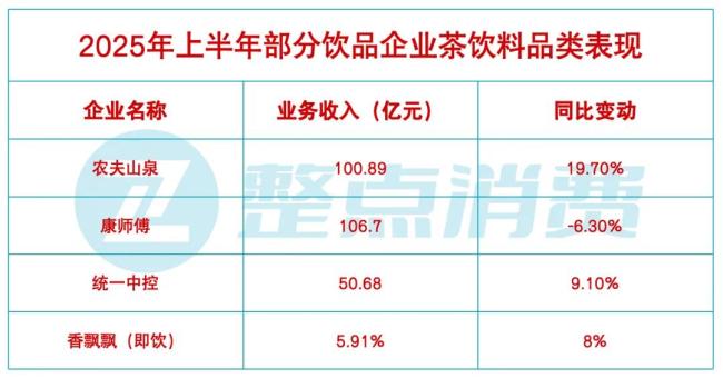 在康师傅涨价的过程中,统一中控成功“捡漏”,其茶饮料实现了高个位数增长。当然,在今年的价格竞争中,也有企业茶饮料表现欠佳,比如太古可口可乐旗下的茶饮料收益跌幅达到了24%.
