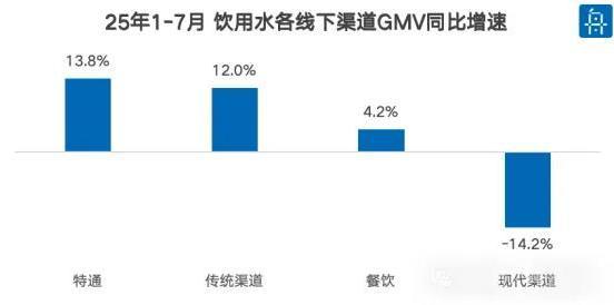 2025年上半年,饮用水市场的渠道格局发生了显著变化,传统渠道与现代渠道表现分化,特通渠道和主流折扣店成为拉动增长的新引擎。