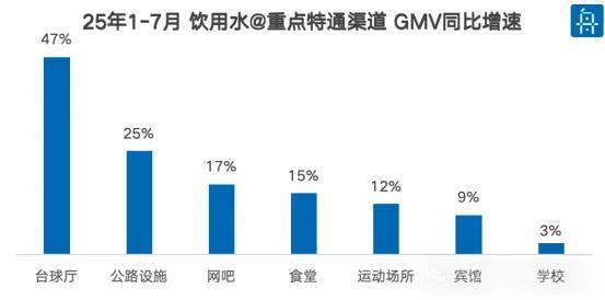 根据舟谱易察快消渠道数据显示,特通渠道(特殊通路)的崛起尤为引人注目。上半年,饮用水在特通渠道实现了13.8%的增长,5-7月间增速更是稳定在15%左右。其中,台球厅、公路设施两个细分渠道表现突出,增长率超过20%,成为特通渠道中的明星板块。特通渠道的快速增长,反映出饮用水消费场景的不断延伸和多元化。以泉阳泉为例,公司通过深度开发南航航空系统用水需求、积极争取中石油系统省份铺货等举措,成功拓展了特通渠道资源,为业绩增长提供了有力支撑。