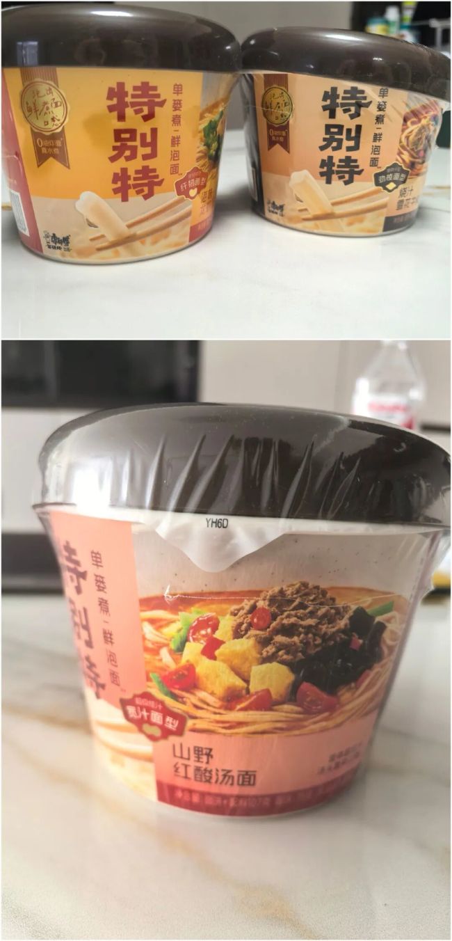 首先吐槽一下包装设计,收到货时发现大部分面条已经压变形,碗盖歪扭地扣在碗身上。这个问题很多网友也有反映,虽然不影响食用,但影响观感。另外,TBT将伸缩筷放在碗盖中间,使用感受还不错。