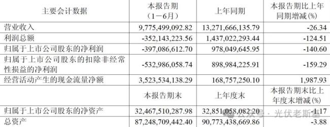 8月27日,合盛硅业公告半年业绩,公司营收97.75亿元,同比下降26.34%;净利润亏损3.97亿元,同比骤降140.60%。