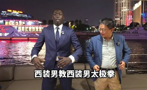 网红“无语哥”夜游黄浦江,自称是成龙的“超级粉丝”,穿着西装示范打太极。