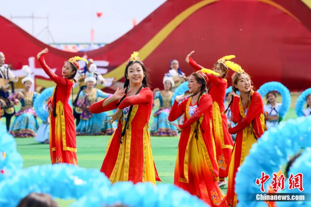 巴里坤哈萨克自治县成立70周年表演。钟伟亮 摄