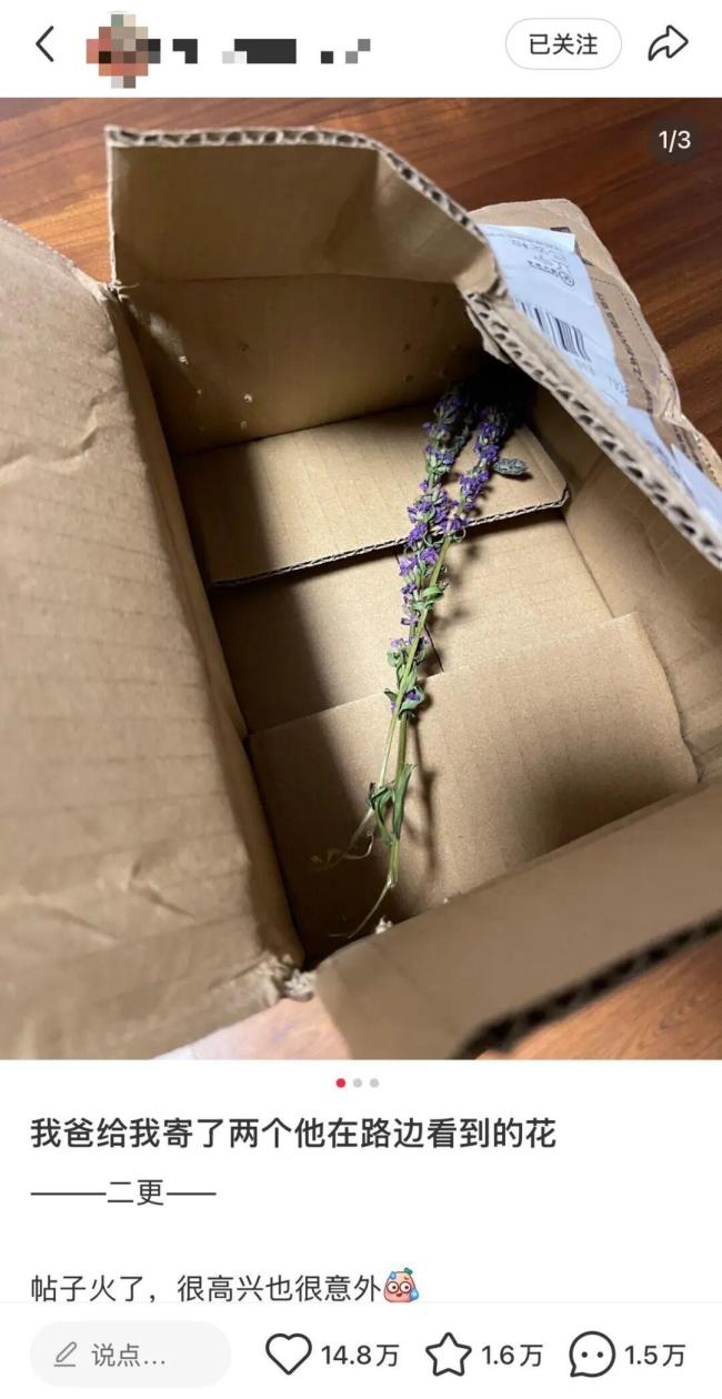 热搜:“我爸给我寄了两支路边看到的花” 笨拙的浪漫引发共鸣