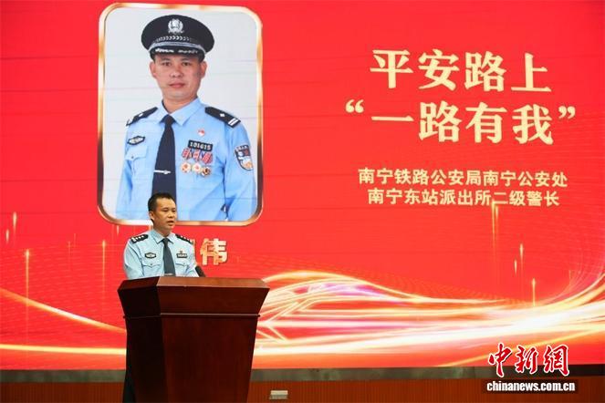 图为高明伟在巡回报告会现场宣讲。南宁铁路公安局 供图