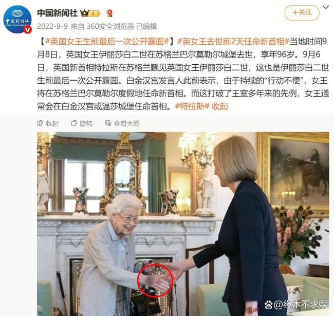 当时媒体也报道了女王去世前2天的行程,称其生前最后一次露面,就是在巴尔莫勒尔堡城堡任命新首相。媒体称女王打破了王室多年来的先例,因为以往女王通常都在白金汉宫或者温莎城堡任命新首相。