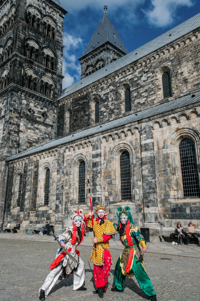 此外,9月26日上午,中国戏曲学院师生还在马尔默HSB旋转中心、Dania滨海公园,隆德大教堂、隆德大学等瑞典南部地标性地点设置了京剧快闪活动,新颖的形式打破剧场边界,让瑞典当地民众和游客在街头巷尾邂逅中国戏曲,为活动增添了更多活力与惊喜。