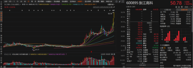 受上述利好消息影响下,近日芯片股、光刻机概念股继续大涨,张江高科连续收获两个涨停板,创历史新高。