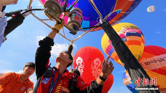 图为参赛选手为“放飞”热气球做前期准备。杨予頔 摄