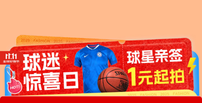 随着江苏省城市足球联赛(以下简称“苏超”)决赛拉开帷幕,作为赛事官方战略合作伙伴,京东11.11特别打造“球迷惊喜日”,通过多重福利活动,为球迷带来一场沉浸式的观赛体验。11月1日当天,用户不仅可进入京东运动采销直播间,实时观看“苏超”总决赛的激烈对决,还能在会场1元竞拍库里、刘诗雯、林高远等众多球星的亲签珍品,领取运动199减50大额券,免费抽取“苏超”周边大礼包、PLUS会员卡等,更有万件球类装备低至5折。打开京东APP搜索“运动球迷惊喜日”,一键加入这场专属于球迷的狂欢!