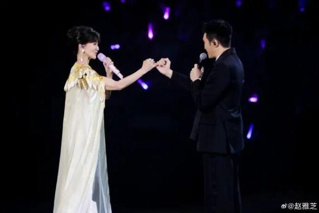 11月20日,赵雅芝在社交媒体上分享了几张照片,并发文:“百花笑,春光展,心内暖!感动于智霖当天坐早上航班,直奔会场,然后再坐晚上航班赶回剧组。”照片中,她与张智霖在舞台上共同演绎歌曲,欢乐互动。