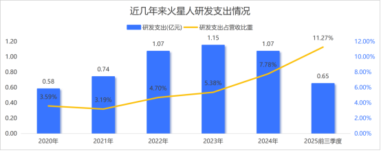 2025年前三季度,研发费用仅有0.65亿元,同比下降近20%。尽管研发费用率不断攀升,但这更多是因为营收规模的大幅下滑,属于“被动提升”。