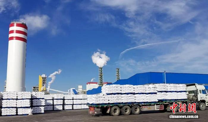 在新疆一企业货场,尿素产品正在装车外销。王晓燕 摄