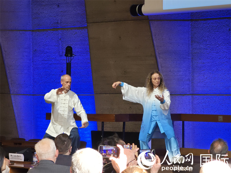 联合国教科文组织总部首个国际太极拳日庆祝活动现场,法国太极拳习练者呈献精彩演出。人民网记者 尚凯元摄
