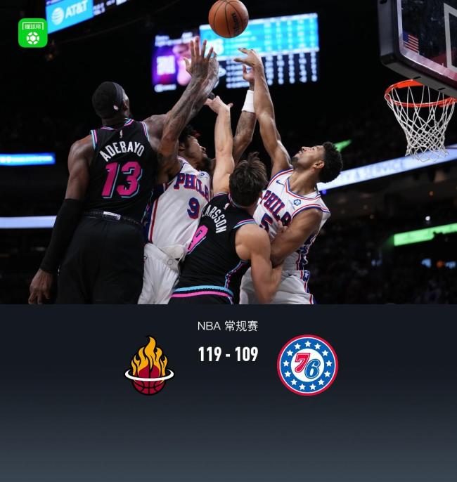 热火战胜76人 希罗30分领衔胜利