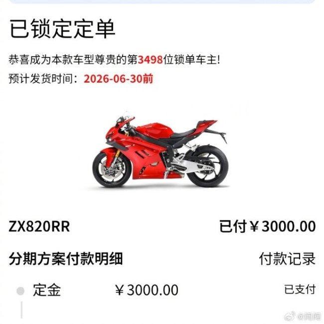 张雪机车夺冠车型要等三个月提车订单激增推延交付!张雪机车在世界超级摩托车锦标赛(WSBK)葡萄牙站历史性斩获双冠后,其冠军同款车型820RR的提车周期成为消费者最关注的话题。目前全国订单普遍排至6月底,最长等待时间接近三个月。