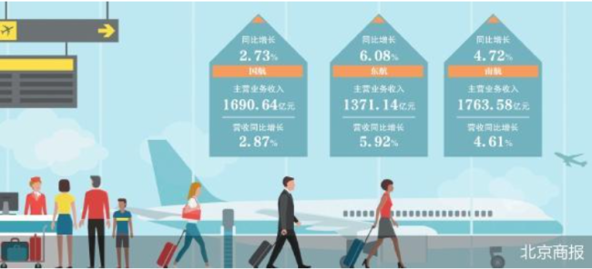 北京商报记者梳理财报数据发现,2025年,三大航的主营业务收入显著改善。国航财报显示,集团主营业务(航空客运、货运及邮运)收入为1690.64亿元,同比增长2.73%;东航的航空运输业务收入为1371.14亿元,同比增长6.08%;南航的主营业务(航空客运及相关服务、货运、邮运)收入为1763.58亿元,同比增长4.72%。