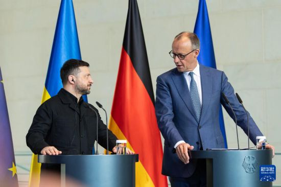 4月14日,德国总理默茨(右)和乌克兰总统泽连斯基在位于柏林的德国总理府出席记者会。新华社记者 张豪夫 摄