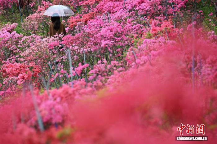4月17日,江苏南京,明城墙下杜鹃花进入盛花期,红色、粉色的花朵层层叠叠,与古朴的城墙、建筑相互映衬,让人流连忘返。中新社记者 泱波 摄