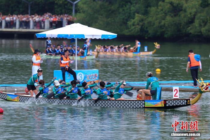 图为女子组12人龙舟100米直道赛半决赛现场。中新社记者 骆云飞 摄