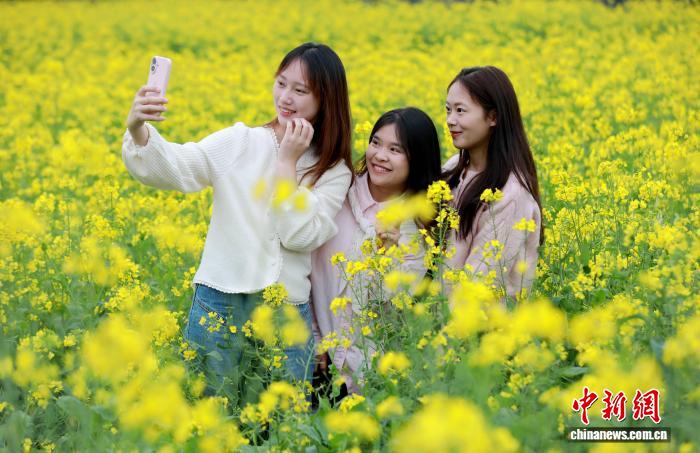 图为游客在赏花拍照。龚普康 摄 图为游客在赏花拍照。龚普康 摄 图为绽放的油菜花。龚普康 摄
