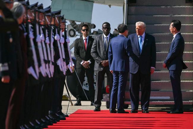 美国总统特朗普于10月29日上午乘专机抵达韩国釜山金海国际机场,正式开始为期两天的访韩行程。韩国方面在停机坪上铺设红地毯迎接,并鸣放21响礼炮表示欢迎。刚下飞机的特朗普显得有些疲惫,与他前几日抵达马来西亚时的兴高采烈形成鲜明对比