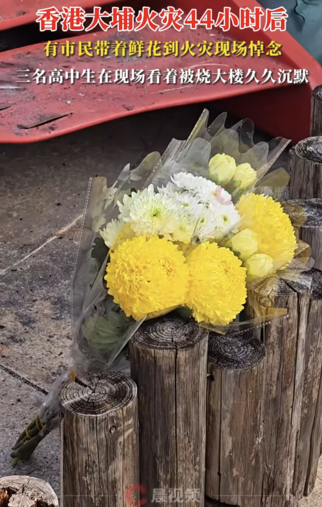 香港市民带着鲜花到大火现场悼念。香港大埔宏福苑火灾造成重大人员伤亡。香港大埔火灾44小时后,有市民带着鲜花到现场悼念,三名高中生看着被烧大楼久久沉默!香港市民带着鲜花到大火现场悼念11月27日,香港特区政府及社会各界纷纷以多种形式表达深切哀...