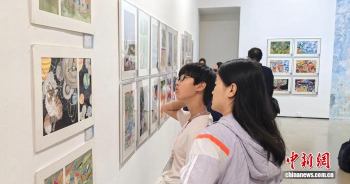 中新社北京9月27日电 (王朝东)台湾学生用细腻笔触描绘憨态可掬的环尾狐猴;北京学生笔下的草原生机勃勃……27日,第十六届海峡两岸少儿美术大展北京展开幕,来自海峡两岸及港澳、海外的青少年用画笔共绘“生命万象”