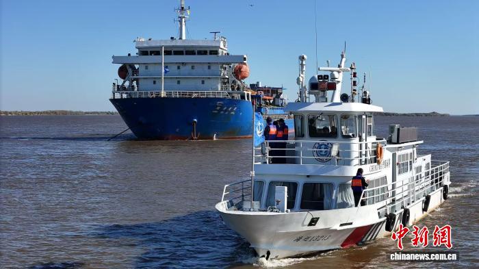中新网佳木斯9月27日电 (石玉卓 记者 刘锡菊)27日,由太仓出发的5000吨级江海联运船舶“湘岳速航”轮装载两艘工程船顺利驶入抚远港。这艘刷新黑龙江江海联运船舶吨位的船舶,将在抚远完成玉米装载后,于9月30日返回太