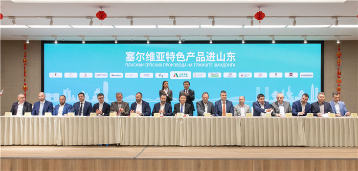 签约仪式现场。王韡摄人民网罗马4月7日电(记者谢亚宏)贝尔格莱德消息:由山东高速集团主办的“塞尔维亚特色产品进山东”主题活动7日在贝尔格莱德中国文化中心举行。塞尔维亚经济部部长梅萨罗维奇、山东高速集团