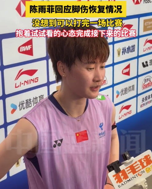 陈雨菲腿上贴着肌贴比赛,最终晋级中国羽毛球大师赛女单16强。赛后采访,陈雨菲表示没想到自己可以完成这场比赛,接下来也会抱着试试看的心态去参赛。目前脚伤还没有完全恢复,大概恢复到了七八成的样子,自己心理上也还是会有些担心和害怕。希望陈雨菲可以...