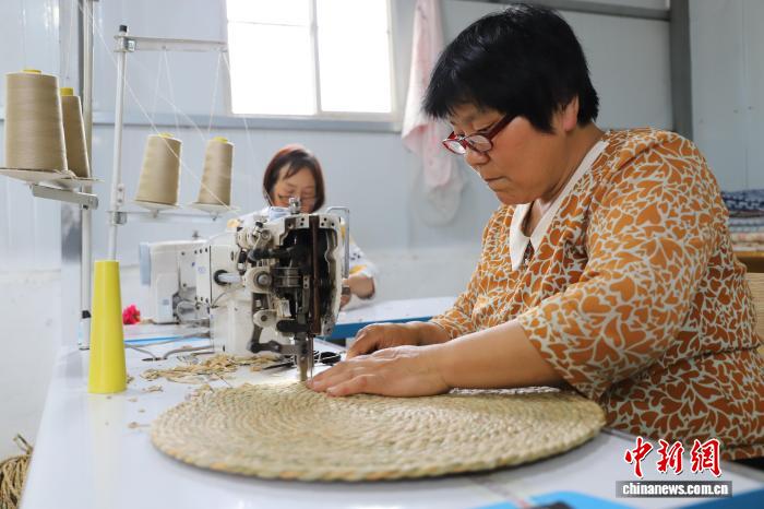 中新网济南12月11日电 (周艺伟)菏泽市郓城县潘渡镇杨庙村的盛泽工艺车间内,年过六旬的村民张英靠窗而坐,手指在蒲草间灵活穿梭。“在家闲着也是闲着,这儿干活不累,还是计件工资,多劳多得,既能赚零花钱补贴家用,