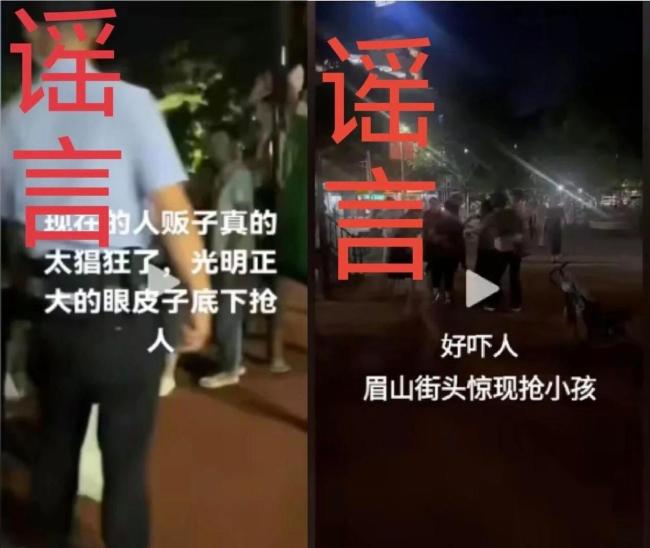 9月24日晚8点左右,有网友发布视频称眉山市东坡区远景楼附近发生抢小孩事件。次日凌晨1点左右,东坡公安发布消息澄清,该信息不实,实际是两家人认错孩子导致的误会