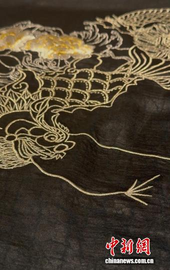 中新网北京10月14日电 题:美国华侨带着香云纱闯世界 作者刘洋 在中国华侨历史博物馆“纱韵岭南——中国香云纱文化艺术展”的展厅内,一条黑色香云纱潮绣长围巾格外惹眼。其表面的金色锦绣图腾,吸引不少观众驻足观赏